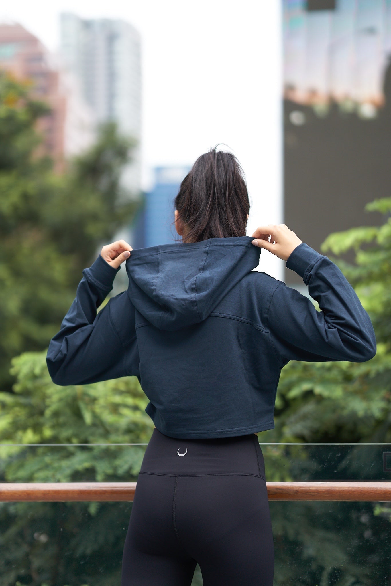 Keep cozy like you're being hugged. Cosmo Cropped Hoodie pairs well with any high-rise pants.