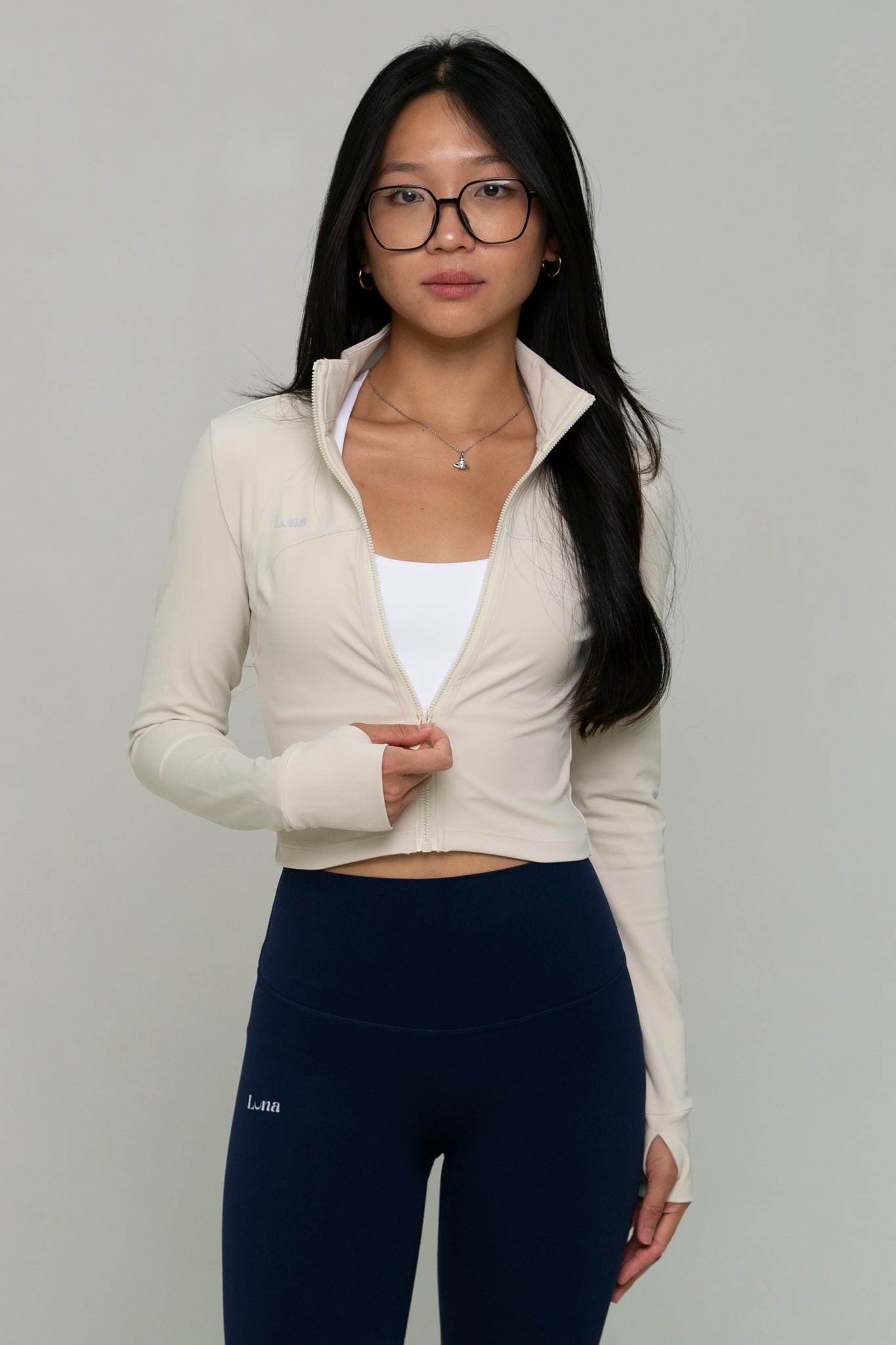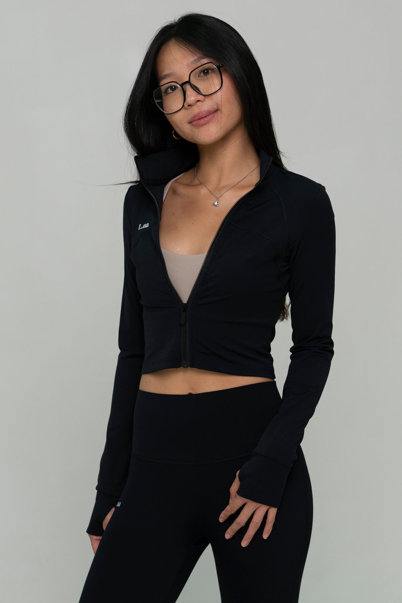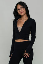 Our Lumi Cropped Jacket is designed to flatter your figure. Featuring anti-slip zippers that stay in place no matter how you move, with thumb hole for added comfort and coverage. This jacket combines style, functionality, and performance in one. Perfect for the gym or any high or low intensity workouts. Simply throw on this jacket for that effortlessly snatched look, both in and out of the studio.