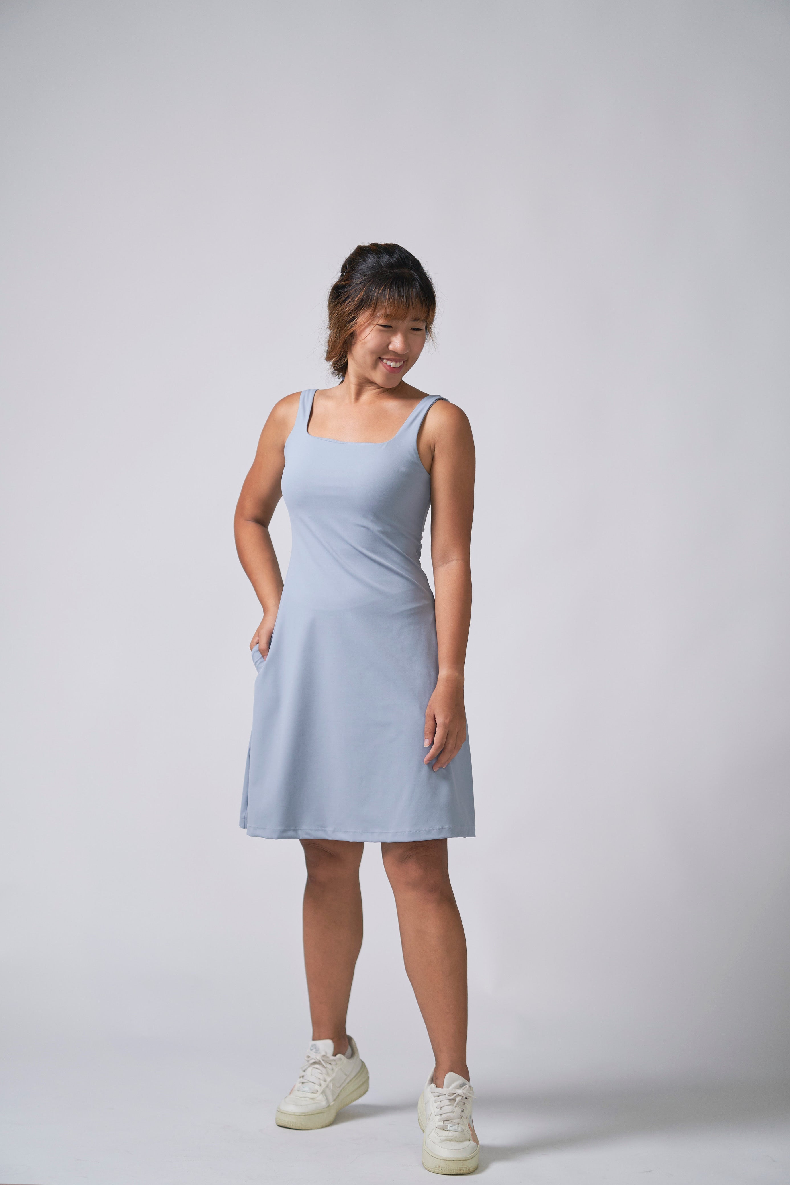 Unlike conventional dresses usually made of cotton or polyester, we have chosen a performance fabric that is more breathable and yet retains its shape for dresses. Wear it to the park or to office. This is probably the most comfortable and versatile dress in your wardrobe.