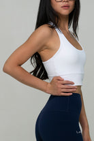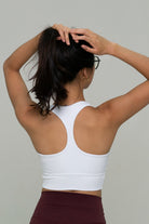 Our Ellure Racerback Sports Bra is classy and moves with you. It comes with a scoop neckline and smooth fabric. Perfect for everyday wear or mid to high impact workouts, with a minimalist racerback design that lets you move freely.