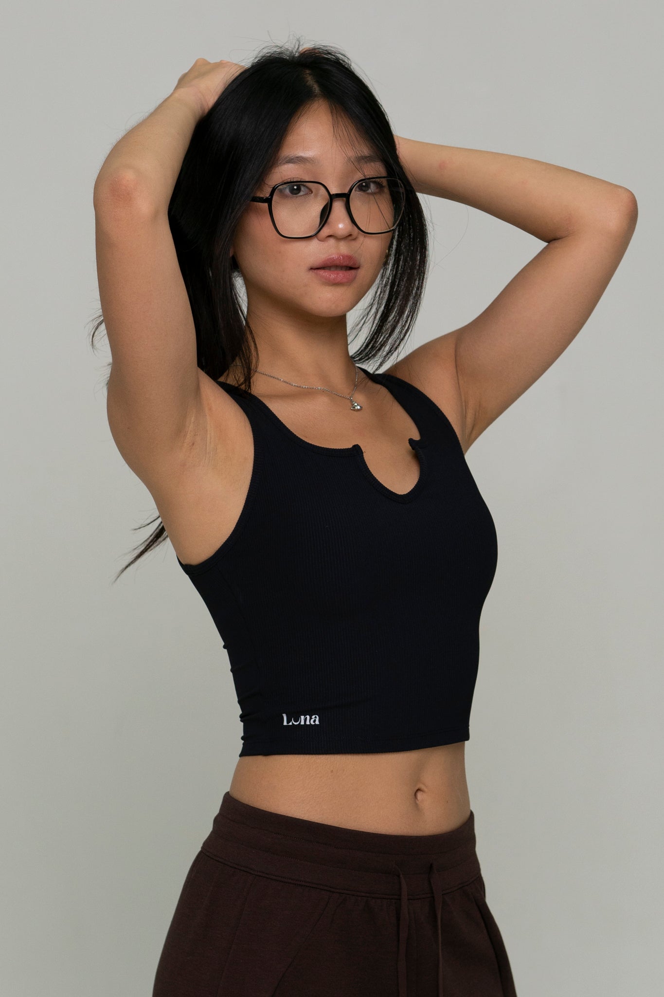 Our Venus V-notch Padded Top is a go-to essential for effortless style and comfort. Featuring a subtle front notch and built-in padding for shape and light support. Made from smooth, stretchy ribbed fabric, it’s perfect for everything from workouts to lounging, making this top a true wardrobe staple.